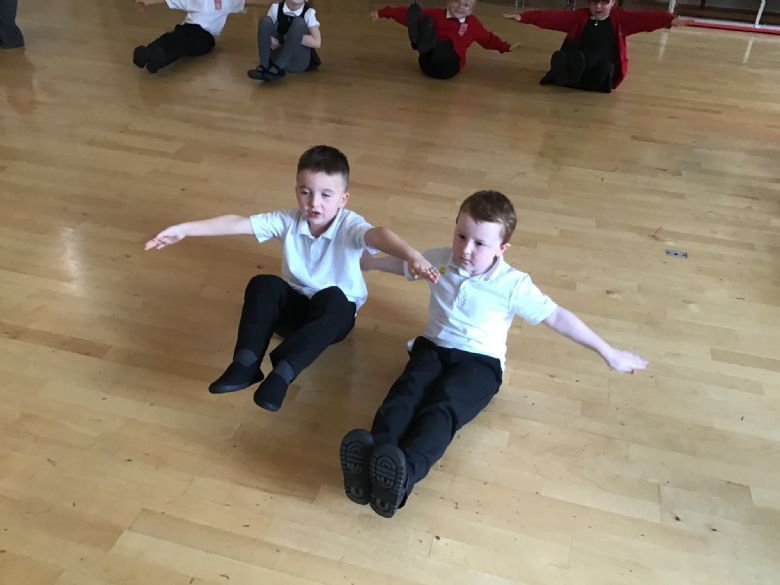 As part of our PE topic this week we were practising our balancing skills. We started by sitting on our bottom and lifting one hand and then one foot. We then lifted both a hand and a foot. We finished with lifting both feet and hands off which we found really tricky as really worked our tummy muscles!