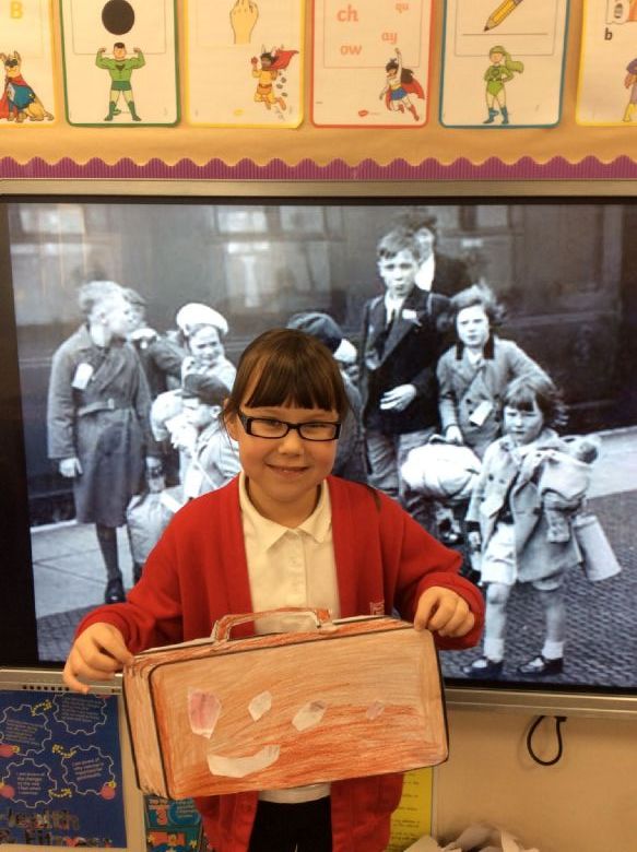 Today we have been learning about what happened to the children who were in the War. We discovered that many of them who lived in the cities, were sent away to the countryside to live with another family. They were allowed to take one suitcase with them filled with things that were important. In class we had a discussion about the different items we would take if we were evacuated from our homes and sent somewhere else to live. We then created our own suitcase filled with possessions and have then written sentences about why we would take these items with us.